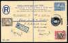 POSTAL HISTORY: 1935 30c registered stationery envelope (size H) to UK, uprated with additional 35c, (5c on 1a, 20c on 3a and 10c on 2a (uncancelled) with ‘ADEN (R.A.F.)’ registration label. Scarce concessionary rate.