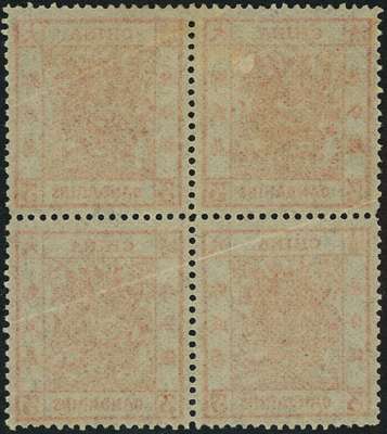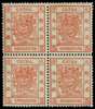 1878 thin paper, 2.5mm spacing 3ca brown-red, block of 4 from setting 1