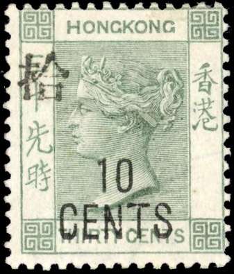 Hong Kong 1898 SG 55c 10c on 30c grey-green with large character mint