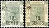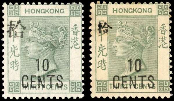 1898 10c on 30c grey-green with large Chinese character fresh hinged mint, with a regular size character example for comparison, this with some overall toning. SG 55c