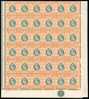 Hong Kong SG 65 KEVII 5c mint marginal block of 72