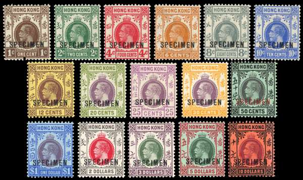 Hong Kong 1912-21 1c to $10 overprinted Specimen (16)