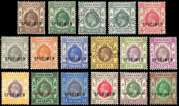 Hong Kong SG 117s-132s 1921-37 set Specimen