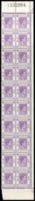 1949 printing of the 10c dull reddish violet block of twenty (2 x 10, two right columns of left pane) unmounted o.g., Requisition L on upper selvedge (offset on reverse). SG 145b