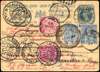 1897 (18 JU) ‘ONE ANNA’ surcharge postal stationery card cent around the world with specific instructions on reverse, from Calcutta via Auckland, New Zealand franked 2½d on 18 AU, thence to London with 2½d Jubilee tied London cds of 2 OC, to Alexandria, Egypt with 5m on 11 X, also routed through Singapore on JU 30 though not on list, Sea Post Office final cancel of 17 OC; some slight corner bumps as to be expected.