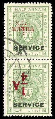 Officials. 1935-6 ¼a and 3p se-tenant pair with surcharges inverted, fine used. SG O318ba, £350