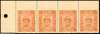 1946-8 1a orange corner strip of four imperforate between stamps and upper margin, unused without gum, as issued. Some creasing but an unusual piece. SG 106 var