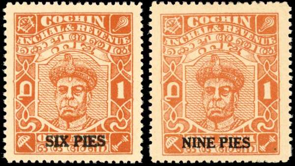 1949 6p on 1a and 9p on 1a, each fine unused, without gum, as issued. Difficult. SG 127-8, £400