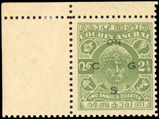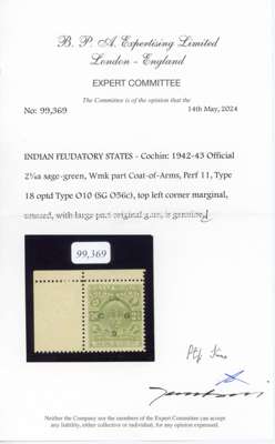 I.F.S. Cochin 1942-43 Official 2¼a wmk 27 type O10 opt unused
