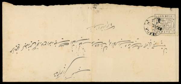 1897 long cover bearing ½a black on white, perf 11½ (on two sides), showing native cds for 19 JUL 97, cover creased and light tones, otherwise fine, scarce. SG 1 priced £900 on cover