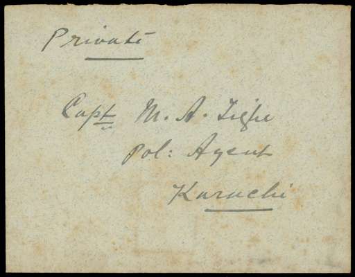 1897-1900 pair of covers, both addressed to Capt M.A. Tighe, Political Agent (second cover with additional annotation of Karachi) both bearing on reverse ½a black on white perf 11½, first cover showing Karachi cds and second cover uncancelled, odd tones, an interesting pair of covers. SG 1
