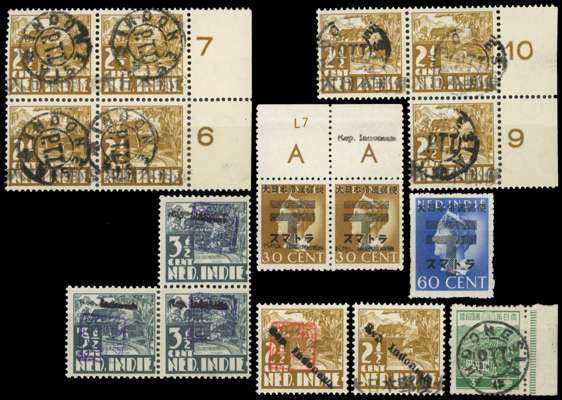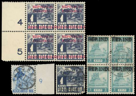 Issues for Sumatra: 1945-48 Local overprints with ‘Rep Indonesia’ horizontal and diagonal overprints and circular INDONESIA P.T.T. overprints in black and violet, occasional slight tone, a generally fine group