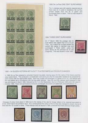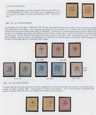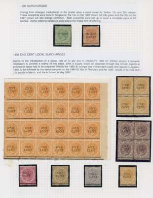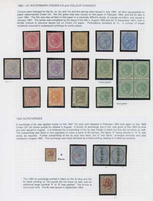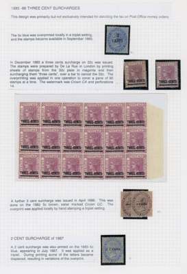 1867-99 mint collection (181) on leaves. A very good degree of completion, without the rarities but including many better stamps. Commences with 1867 overprint values, the set less 6c and 12c, mixed gum (where gum is present; some without) but with good appearance, and the 1867-72 set in similar condition, plus the 2c o.g. with inverted watermark (thin spot). Thereafter many good surcharges (not all guaranteed) and other stamps including SG 20-1, 33, 33-4, 44-5 (two each), 46 (surface rub), 41, 42, 47, 48-9, 50-3, 54, 57, 61, 63-71 including 6c inverted watermark (small part o.g., but faulty, a rarity unpriced in Part 1), 73, 76, 78, 80 (fair), 82, 84 (two), 95-105. Condition is inevitably mixed, but this collection is a fine basis for expansion or resale, catalogued in excess of £16000
