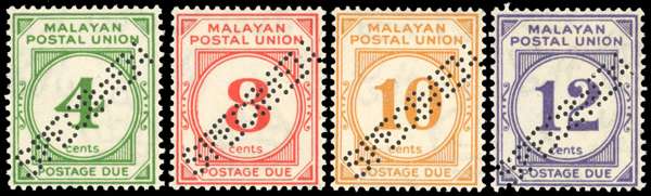 Malaya Postal Union SG D2s-D5s Specimens