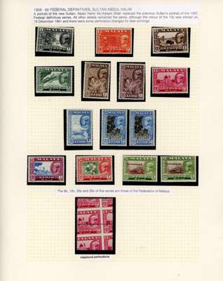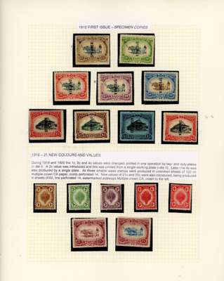 1912-2012 mint collection on leaves, complete one-of-each to 1965 ex the 1940 2c. Some extras with SG 6s-14s (some faults), 1921-4 wet and dry printings, 1922-40 1c line perf sheet; 1959 5c spectacular misperf ‘pair’ with portions of six stamps. Generally good. Later with several imperforate proofs/colour separations