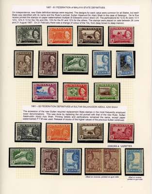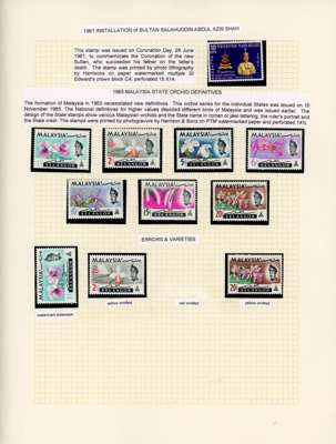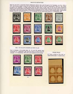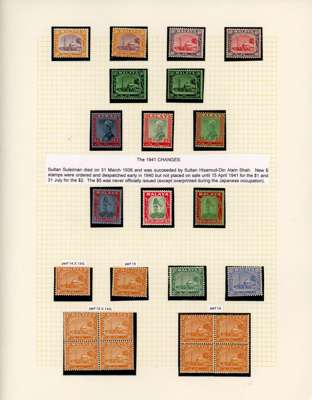 1881-2007 mint collection on leaves with a good range of highly-catalogued earlies in mixed condition, then 1895 values including 25c (2), 50c and $1, also $5, $10 and $25 Specimens, the $5 and $10 with faults, the $25 fine; 1c pane of 60, 2c orange block of 40 and 3c block of 20; 1935 set; 1941 $1, $2 and unissued $5 (dark gum); 1949 set, and $5 Plate Proof block of four; later including 1961 Aziz Shah 10c pair and 20c single with fine offsets on reverse, 1965 Orchids 2c and 20c each with yellow omitted, unmounted o.g., and 1971 imperforate colour separations for the 1c (5)