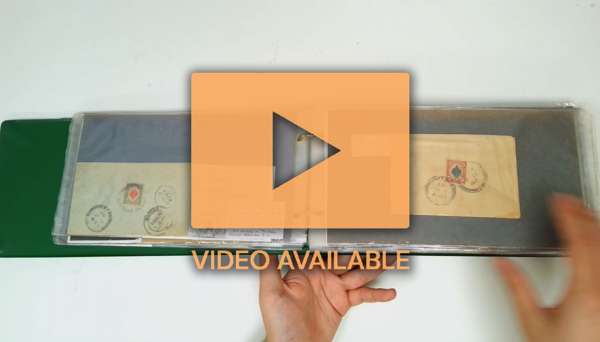 Green cover album with 89 covers, nearly all pre-1945, the majority commercial with numerous Chettiar addressees. A range of states, with some interesting markings noted; British Empire Exhibition, Censors, Kedah 1940 Livestock Exhibition handstamp, Kuala Lumpur Train Letter (Proud TL7) on censored cover, Perak SG 43 on local cover. Mixed condition, as to be expected, but an interesting lot