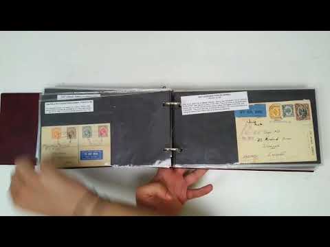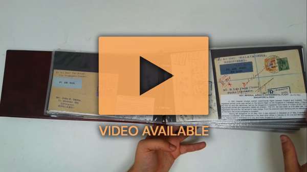 Airmails collection (131) in red cover album, offered intact, the great majority pre-1950. Some better early First Flight items, then many covers illustrating rates; 1931 balloon flight; KLM and Imperial ranges; OAS with Censors and some better frankings; Clippers; two 1946 Freepost to UK; some BMA, and 1954 Singapore Crash cover. A good lot for the specialist or reseller
