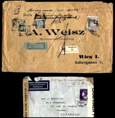 Small group including unclearly dated insured envelope to Vienna, 1940s censored airmail covers including one with manuscript AV2; some mixed condition (9)