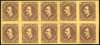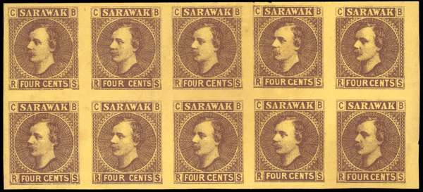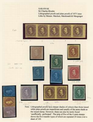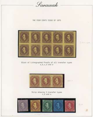 1875 2c-12c group of imperforate proofs, including 2c mauve (3) and buff, 4c block of 10 and strip of 5 showing all transfer types with additional singles and pair, 6c green (2) and another with unofficial perforation, 8c bright blue (3), 12c (2). Fair to fine. SG 3/7var. (19)