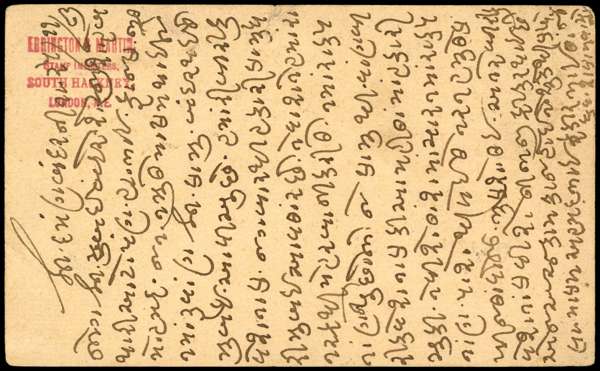 PORTUGUESE INDIA; c.1880 India ¼a postcard, from Daman addressed to Bombay, with fine strike from Daman cds for 25 NOV, and Bombay arrival marks for NOV 26, card with small tears and creases, still attractive and rare.
