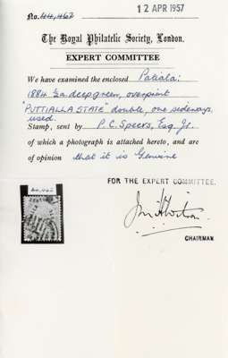 1884 ½a blue-green, type 1 curved opt, ERROR OVERPRINTED DOUBLE ONE SIDEWAYS, fine used by part strikes from hooded ‘P’ obliterator, spectacular and rare. We have recorded only seven examples in private hands (two in the Royal Collection and one in Tapling) RPSL Certificate 1957 SG 1a £1200