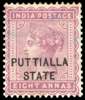 1885 8a dull mauve, opt type 2 in black, variety ‘WIDE SPACING BETWEEN LINES’ (1¼mm instead of ¾mm spacing) fine part o.g. diagonal bend and trivial light surface blemishes, still a remarkable rarity, with few ‘wide spacing’ examples recorded. From a trial setting which was included with the regular issue. SG 12c £800