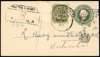 1900 locally addressed QV ½a postal stationery cover, additionally franked by 1891-96 4a olive green, opt type 3 left hand marginal showing error ‘PATIALA’ OMITTED, (R.19/1) tied by hooded Patiala state Reg cds for MY 31, neighboured by boxed registration mark, minor peripheral perf stains affecting adhesive, otherwise a rare and attractive item. With 81 possible examples of which we have recorded 12 examples on cover. SG 21a