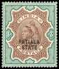 1891-96 3r brown & green, variety OVERPRINT TREBELE TWO ALBINO, large part o.g. couple of minor gum wrinkles , still very fine for this, only 400 of the basic stamp issued. SG 30b £375