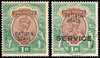 1912-26 1r red-brown & green, and Official counterpart opt type 3, both variety OVERPRINT DOUBLE ONE ALBINO, used, large part o.g. the other used state hooded cds, gum a little toned and small thin at foot to used, still largely fine pair, with opt double one albino on official currently unlisted in Part I. SG 58a, O43var