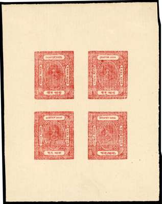 Barwani SG 18var Imperforate Proof on Vertically Laid paper.