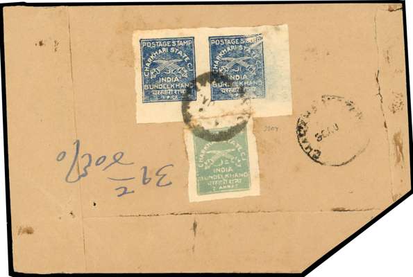 1930-45 handmade cover, franked by 1p deep blue pair and 2a greenish-grey, large surrounding margins, well tied by native cds dated 30 AU 1940 and further strike at right, cover reduced at lower right, otherwise fine, attractive. SG 31-43