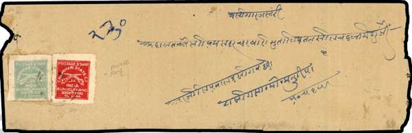 1930-45 long handmade envelope, franked by 1a red with private perforations on all sides and 2a greenish-grey imperf, lightly tied by native cds, backstamped by state cds for 23 NOV 44, some creasing to cover, still attractive with private perforated examples rare. SG 37-43