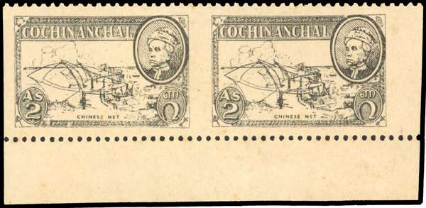 1949 2a Chinese Nets lower right corner horizontal pair, imperforate vertically, slightly streaky o.g., very lightly hinged. RPS Certificate (1982), ex Barber. SG 117a, £800