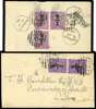 1906 pair of covers, franked by ¼ on ½ch (in contrasting shades), as vertical pair and block of three, tied to separate covers, by barred native cancels, with fine transit and arrival marks, A scarce and most attractive pair. Both addressed to ‘T.F. Bourdillon, Conservator of Forests’ SG 21