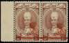1942 Kelantan 8c on 5c red-brown marginal horizontal pair with Handa Seal, left stamp R5/1 ‘Cente’ for ‘Cents’. Large part o.g., very lightly hinged. A rare multiple. BPA Certificate (2023). SG J43, a, £2100