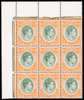 Postal Fiscals. 1952 10r dull green and yellow-orange (the paler green and yellower orange shade) top left corner block of nine, unmounted o.g. SG F1, £900