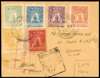 1944 envelope to Singapore bearing the set of five, Khota Bharu CDSs of 3.28.87. Despatch and arrival Censor marks on face. Ex Rowell. SG TM1-5