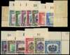1939 set of fifteen, unmounted o.g. A most unusual set, all except the 10c being top marginal or corner examples with sheet number 10, mostly hinged on the selvedge. The 1c and 15c with small foxed spots, the high values with gum which is very slightly two-toned, visually fine. SG 303-317, £1400