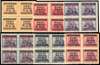 1949 Silver Yuan surcharges on revenue stamps set of five in unused blocks of four