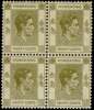 1938-42 30c yellow-olive perf 14 unmounted o.g. block of four, faint offsetting from a 50c value on reverse otherwise very fine; scarce multiple. SG 151, £600