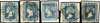 1854-55 ½a Die III group, in the listed shades, including: ½a pale blue, with ‘27’ type 5 for Etah, ½a blue, huge margined example cancelled by near complete B-157 type 7 mark for Rungpore, and trio close to good margins all cancelled by type 4 mark for Bombay, fine condition. SG 8-10 £660