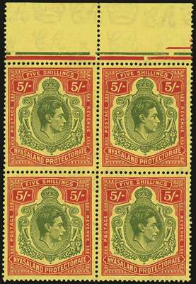 NYASALAND SG 141a 1938-44 5s ORD PAPER B4 U/M