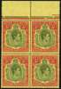 1938-44 5s green and red/pale yellow, ordinary paper, upper marginal block of 4 with part centre guide (R1-2/5-6), brilliant unmounted o.g. (hinged in margin). Attractive.
