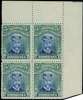 1922-24 5/- deep blue and bright green, head die III, perf 14, upper right corner marginal block of 4, the right pair without pos. 10/20 'collar flaws', unmounted o.g. A rare and lovely positional multiple. SG 307 Ex Gibbs (Sotheby 9/09/88, lot 1038)