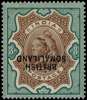 1903 Queen Victoria 3r brown and green overprinted at base, the overprint double with both impressions inverted. one albino. Fine and fresh large part o.g., ‘W.H.P.’ (Peckitt) guarantee handstamp on reverse as have all these. One sheet existed. PFSA Certificate (2000). SG 23a, £950