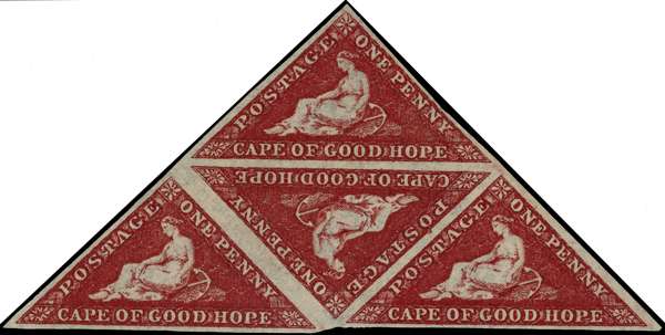 COGH: 1863-64 1d brick-red on cream toned paper, block of 4, fine fresh multiple, large part o.g. SG 18