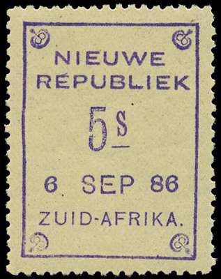 1886-87 5s violet on yellow, dated '6 SEP 86', brilliant large part o.g. Rare thus, only 14 recorded by Jonkers.