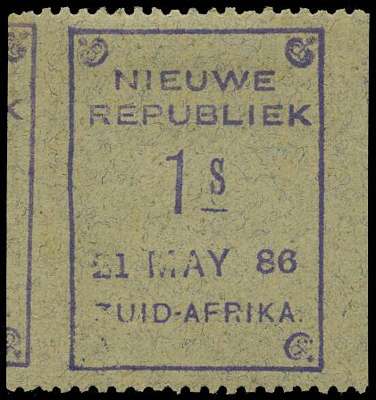 NEW REPUBLIC SG 32 var 1886-87 1s VIOLET ON BLUE GRANITE DATED 21 MAY 86 IMPERF VERTICALLY LPOG