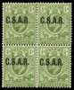Railway Official. 1905 ½d yellow-green, opt "CSAR" (type RO1) towards top, block of 4, large part o.g. Slight creasing and a few lightly toned perfs, still fine appearance. A rare multiple.